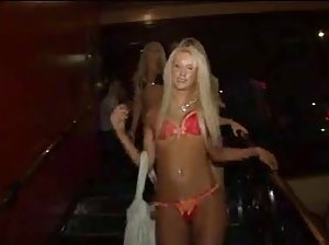 被破坏的钢棒女同志和抽水的家伙在游泳池边