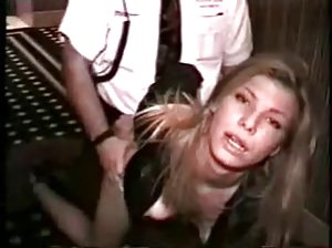 褐发女郎在白色丝袜与一个家伙铸造