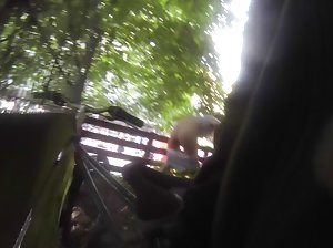 顽皮的黑发脱光了街道上, 并推她的公鸡在她的嘴里