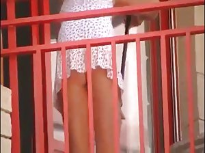 可爱的女孩在白色丝袜指法家伙踢公鸡